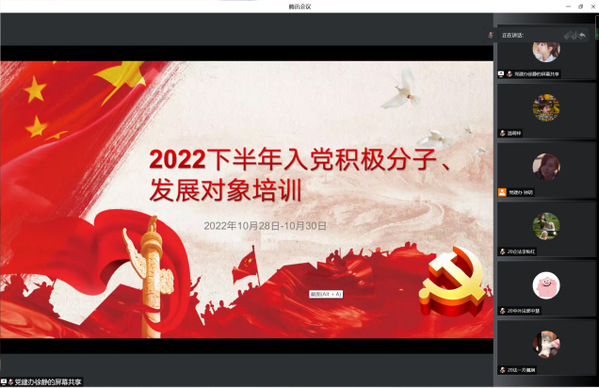 2022年10月28日至10月30日,公司党建办公室组织的发展对象、入党积极分子集中培训于线上开展。此次培训为期三天,共有20名发展对象和7名入党积极分子参与本次培训。